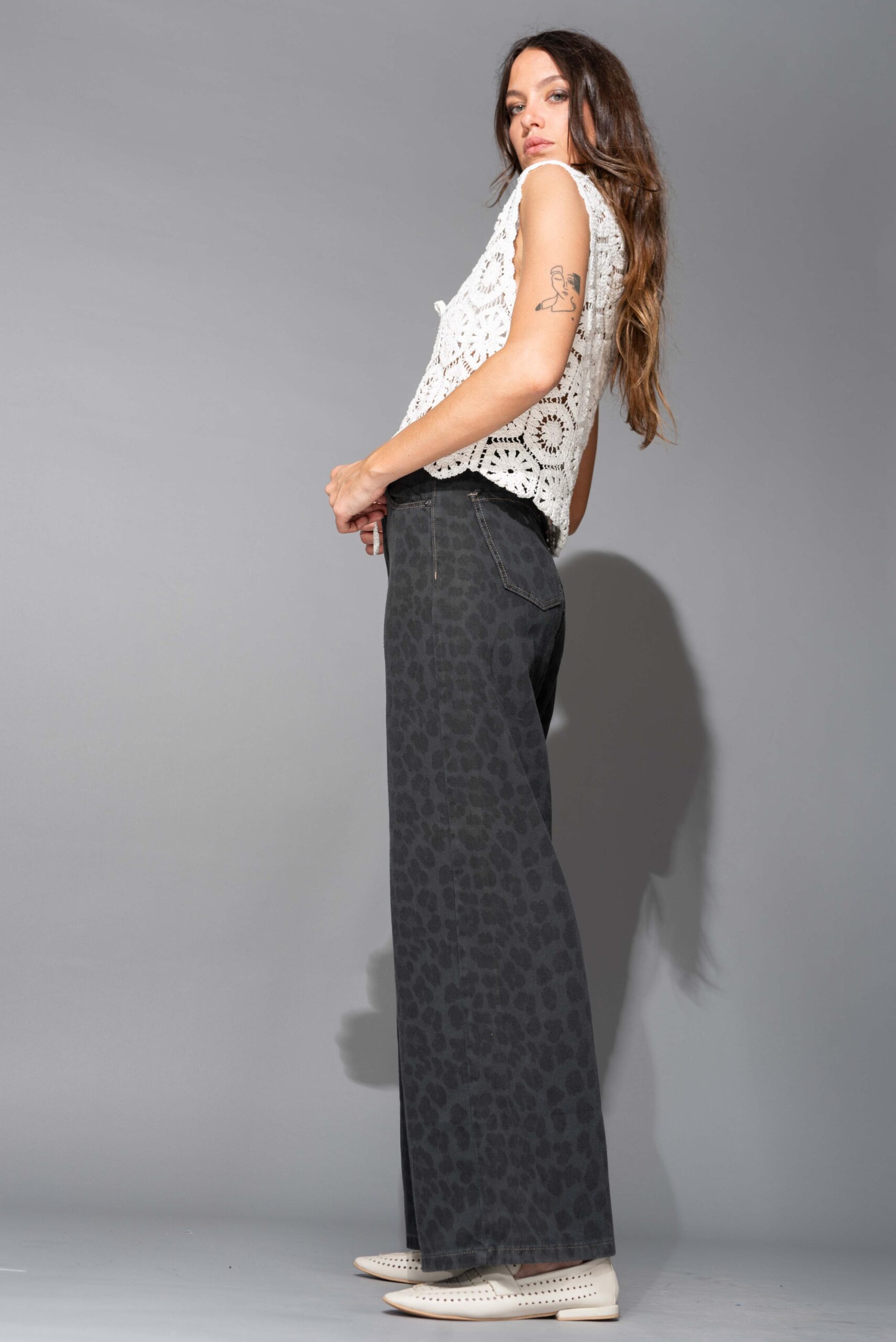 JEAN ANIMAL PRINT PIERNA RECTA TIRO BAJO CAIDO.