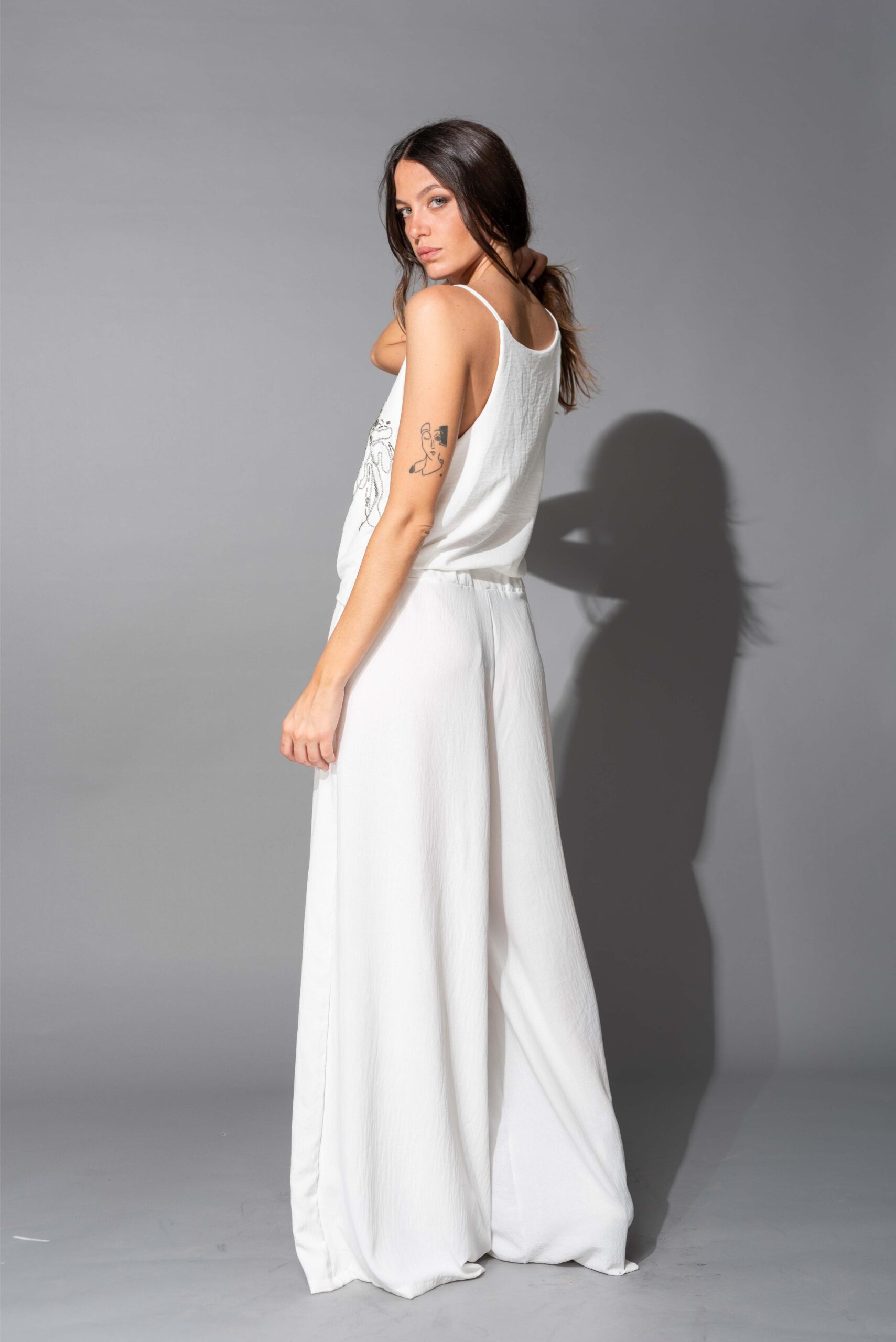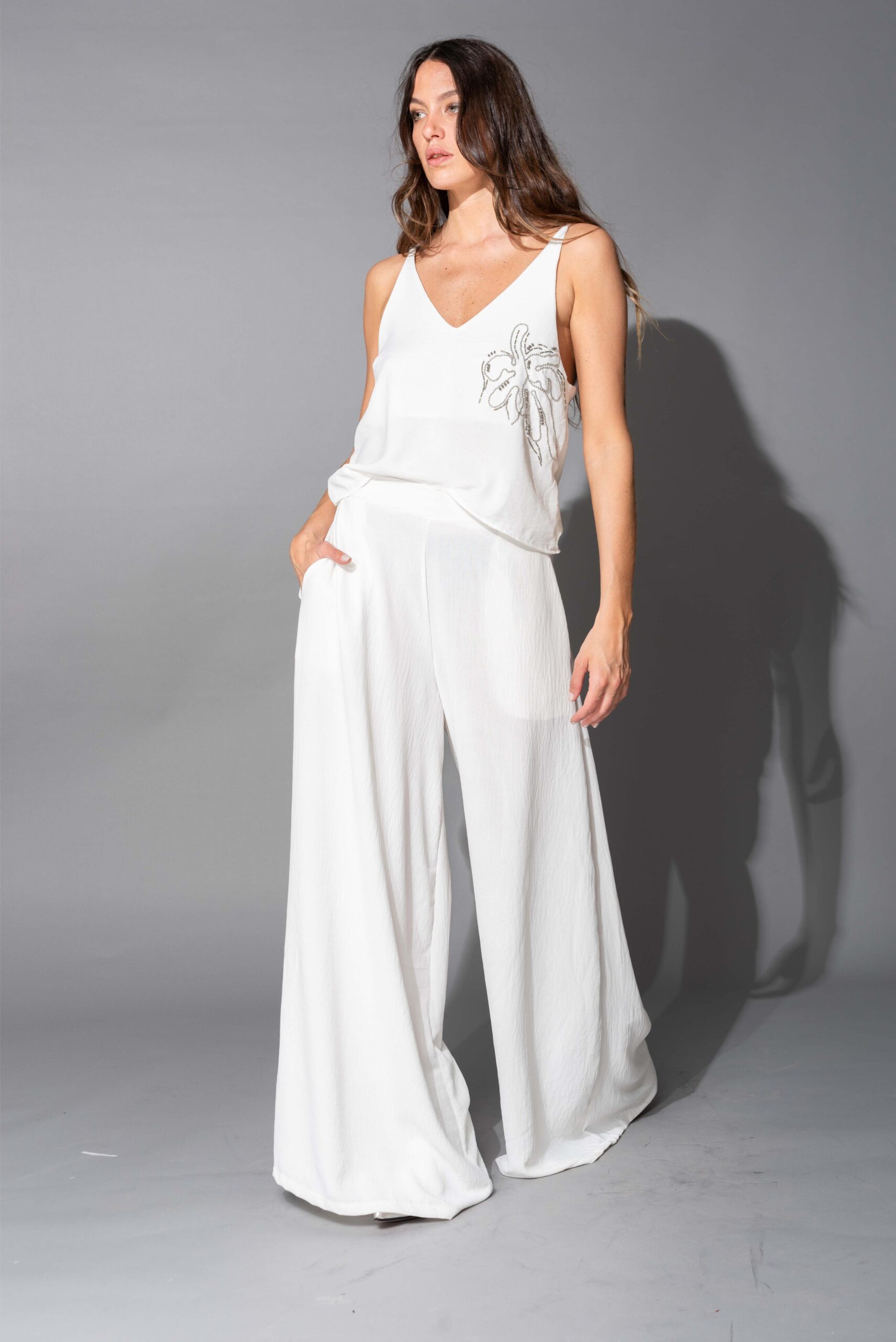 MUSCULOSA DE SEDA OPACA CON BORDADO HECHO A MANO