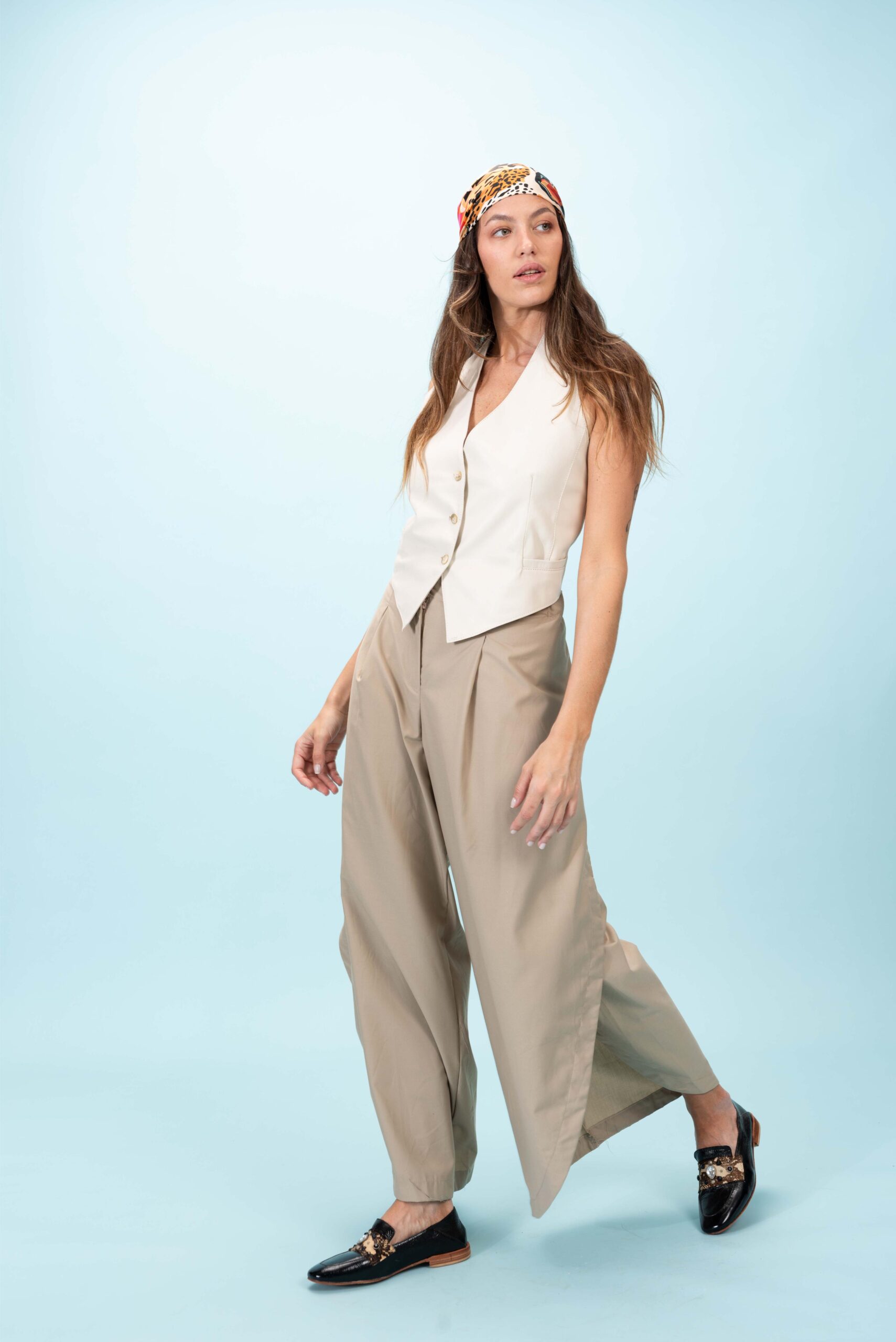 PANTALON CON DETALLES DE ABERTURAS LATERALES Y DOBLE BOTON EN CINTURA