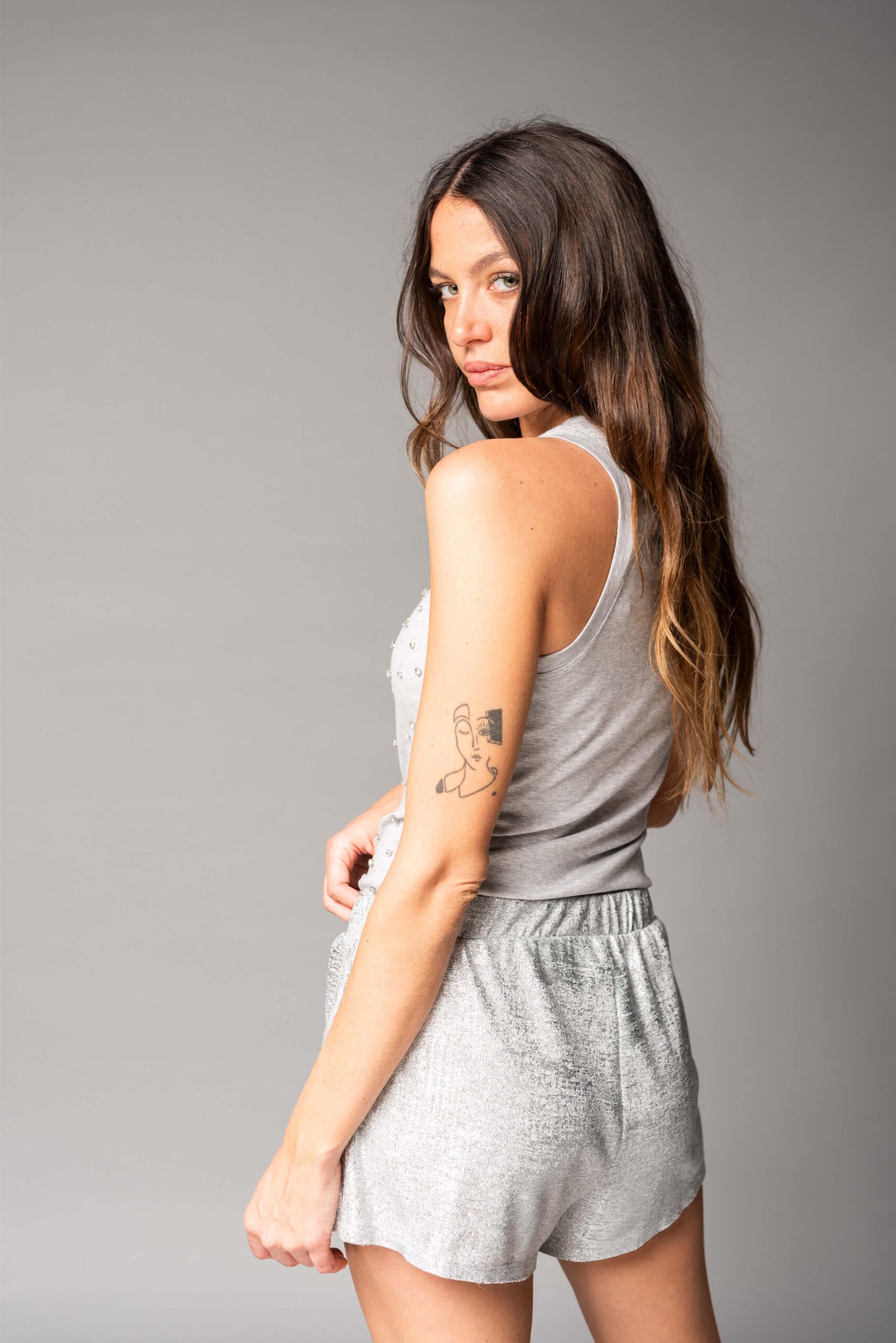 MUSCULOSA DE ALGODON BORDADA CON STRASS